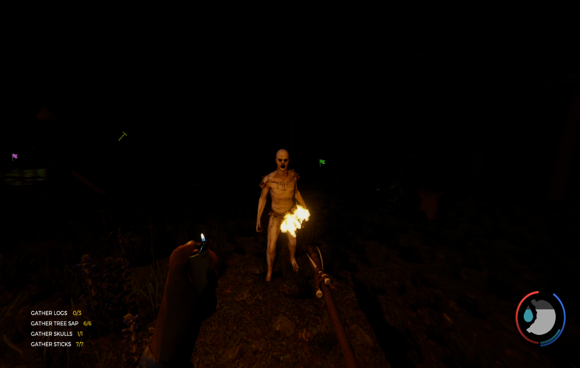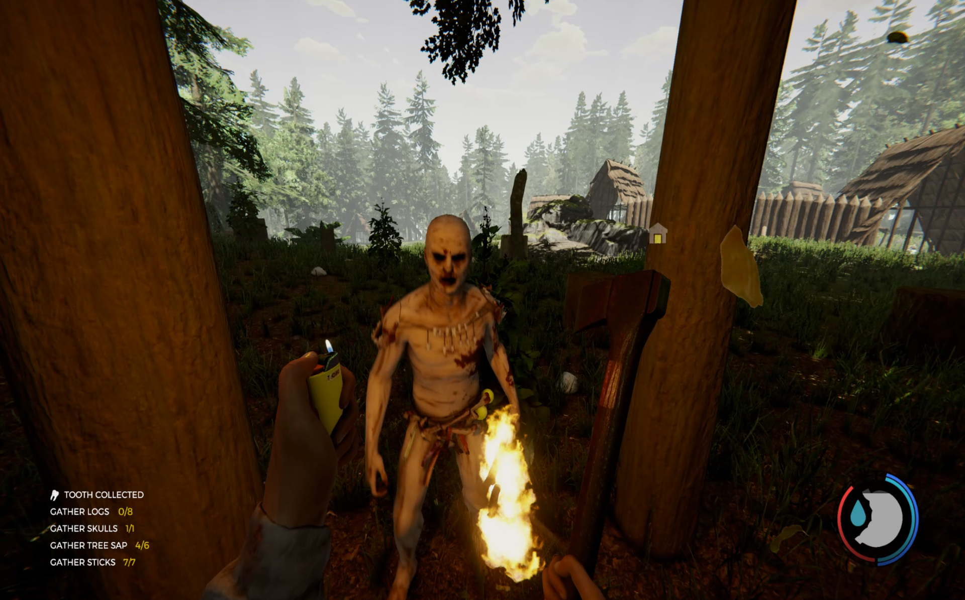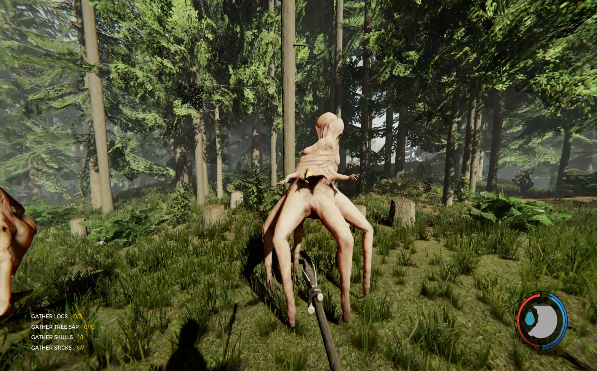 As you progress in The Forest, you will see Cannibals more and more, often roaming in hunting parties or setting up grisly effigies outside your camp. Some are unarmed while others wear intimidating skull lamps and limb adornments. They can also wield deadly Clubs decorated with human and animal remains.