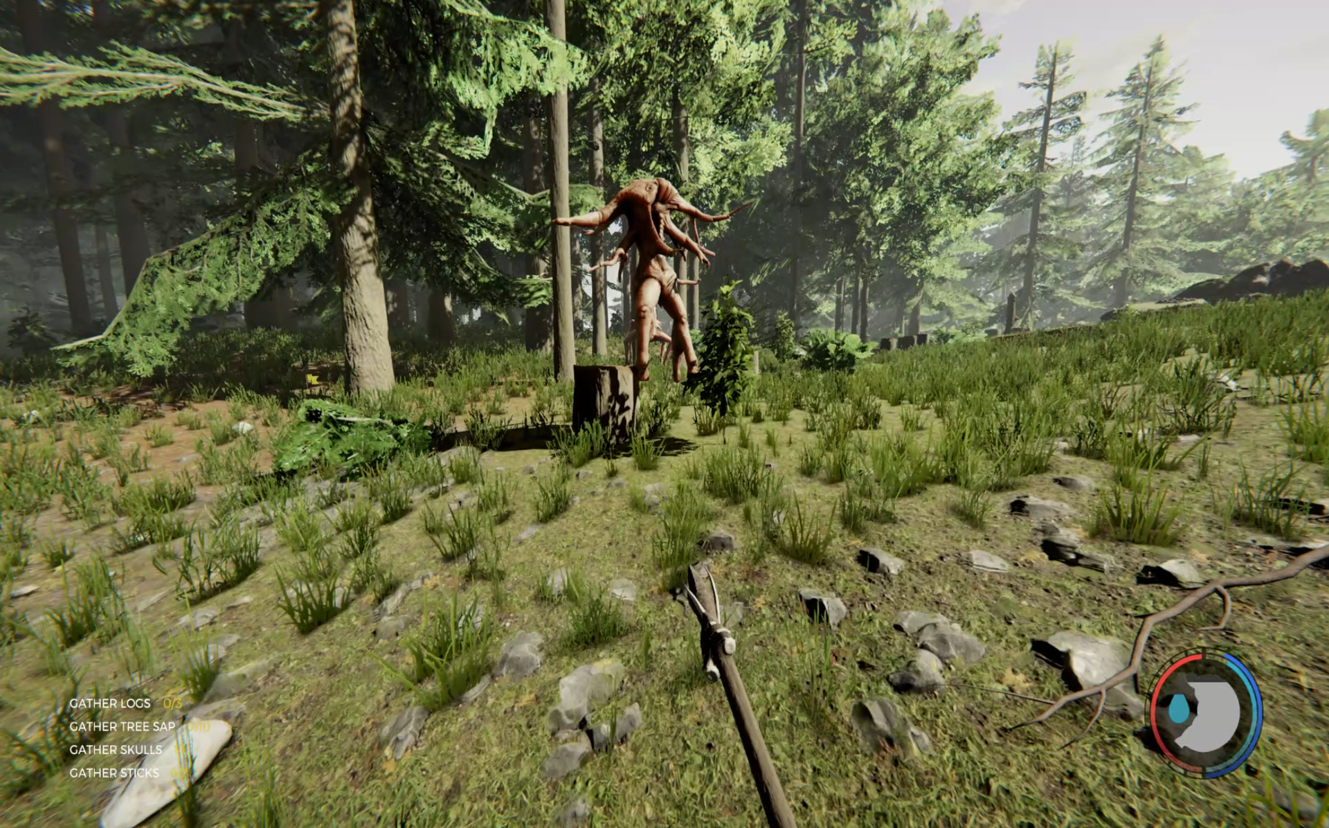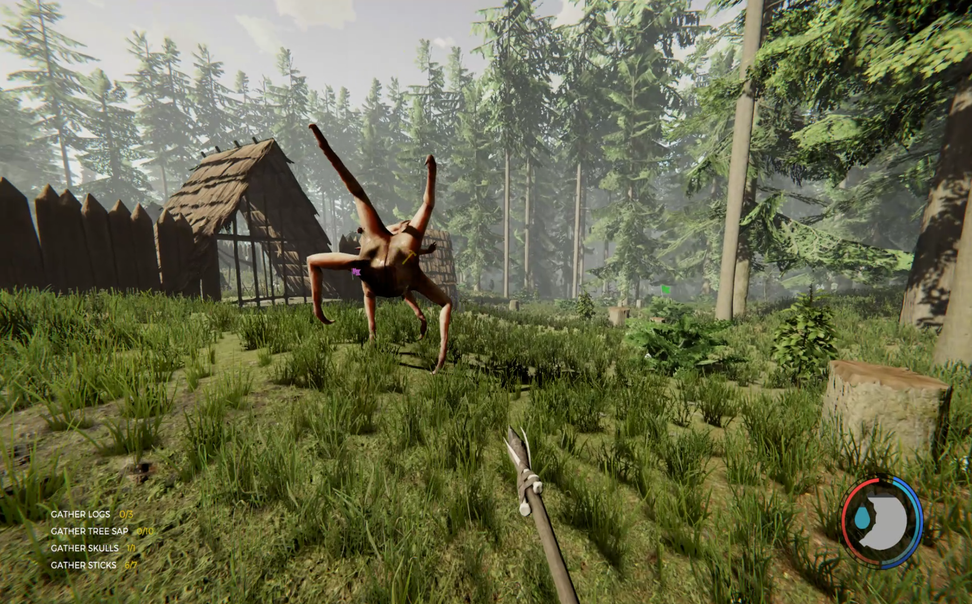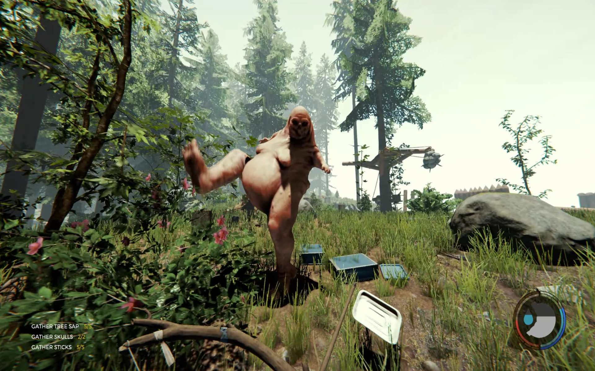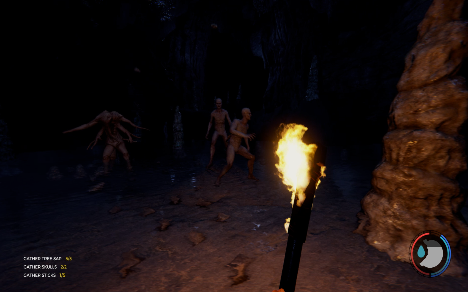 As you progress in The Forest, you will see Cannibals more and more, often roaming in hunting parties or setting up grisly effigies outside your camp. Some are unarmed while others wear intimidating skull lamps and limb adornments. They can also wield deadly Clubs decorated with human and animal remains.